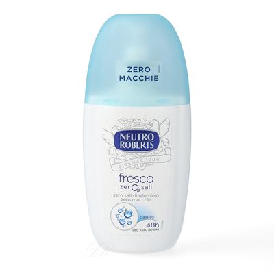 Long-lasting protection! The deodorant spray "Fresco" by Neutro Roberts does not contain aluminium salts and offers a long-lasting protection against the development of unpleasant odours without hindering the natural skin transpiration. The deodorant provides a pleasant feeling of freshness for up to 48 hours and the timeless and fresh unisex scent is suitable for both women and men. The absence of aluminium salts also prevents the formation of stains on clothing.