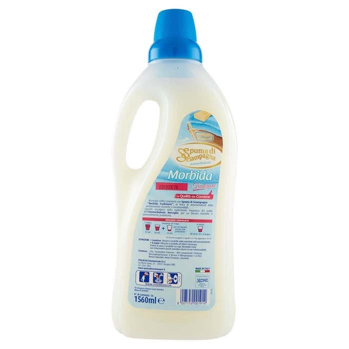 Awaken soft emotions with Spuma di Sciampagna "Morbida Tradizione", the line of Softeners with classic and unmistakable fragrances. Let yourself be enveloped by the traditional fragrance of cleanliness of the Marseille softener, for a soft and pleasantly scented laundry.